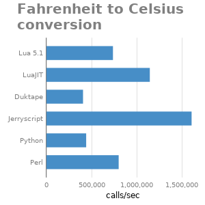 - Fahrenheit to Celsius conversion. Test simple mathematical formula.